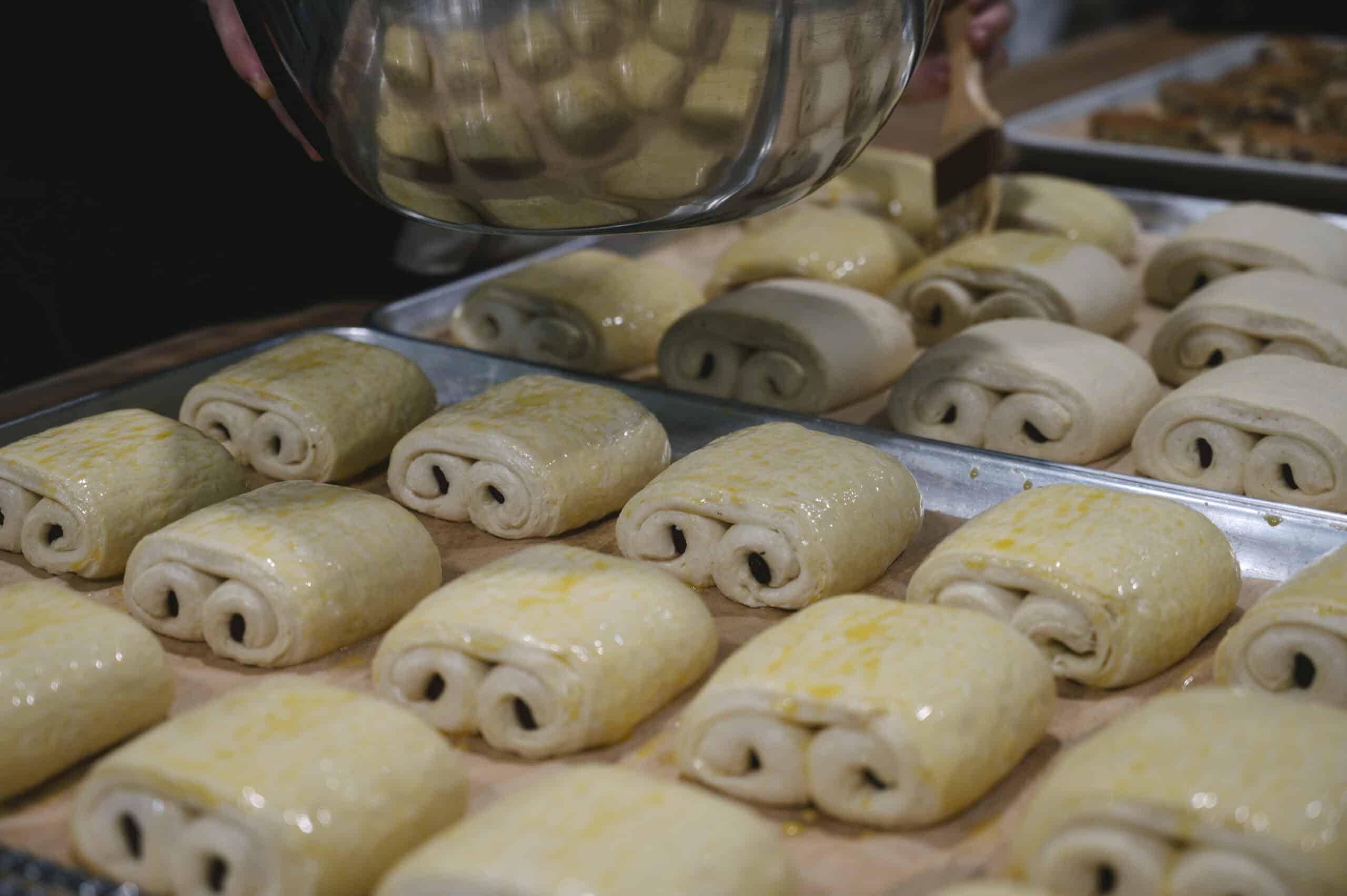 Plain Croissant | Pain au Chocolat | Almond Croissant | Cinnamon Sugar Cruffin | Lemon Danish | Cherry Danish | Cheese Danish | Cardamom Pistachio | Cinnamon Roll |Lemon Poppyseed Roll | Cranberry Orange Scone | Chocolate Oat Cookie | Spinach and Feta Danish | Ham & Cheese Croissant | Pistachio Cruffin | Croissant Bread Pudding